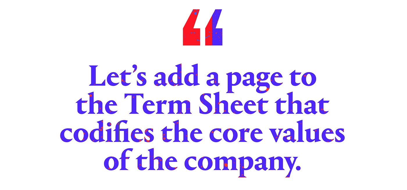 Founders usually have a clear idea of their company values before they make their first hire or take their first dollar of angel investment. But somehow the world is filled with stories of entrepreneurs clashing with their investors and Board of Directors over values-based decisions long after they’ve raised capital. While the typical venture capital term sheet outlines fundamental business rules that set the stage for legally binding investor documents, they remain silent on the founders’ intentions for the company’s culture and values.