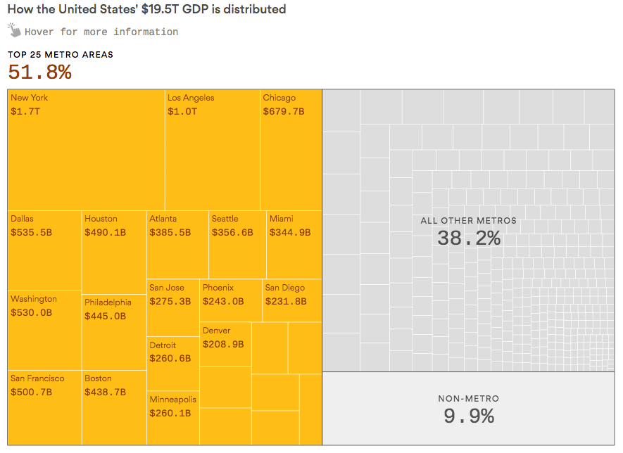 Critical mass and urban density explain why innovations that aim at reducing friction are far more likely to take place in large cities rather than smaller population centers. It’s easier to deliver 100 items in a 20-block radius than 10 items spread over 200 miles, just as it can be more efficient to offer a service to millions rather than tens or hundreds of thousands. Some benefits will spill over to areas outside the world’s largest urban centers. Breakthroughs and insights will no doubt come from geographies beyond the bounds of our urban centers. But economies of scale will mean cities continue to become increasingly attractive because they offer an ease of existence impossible to mimic elsewhere.
